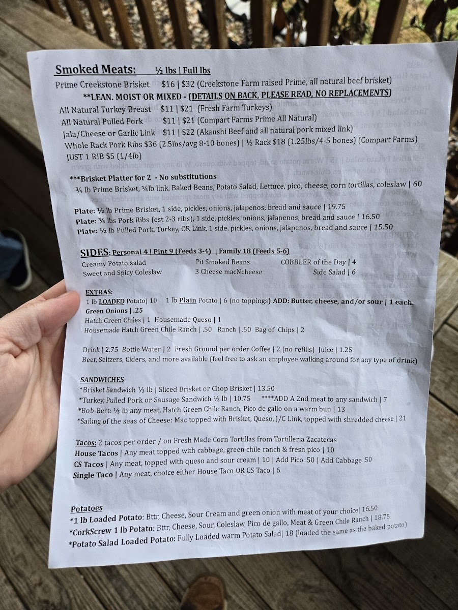Excellent Q. I had the turkey plate with slaw and my wife had the 1/4 lb brisket plate with potato salad. The turkey was among the best I’ve had. She said the brisket was lean and delicious. Washed it down with a Lawnmower.