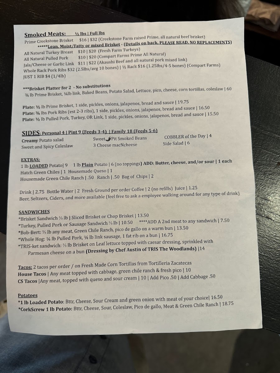 Well-deserved Michelin 1 Star restaurant . I’ve had bbq from Pit Room, Turth, Goode Company, Brisket & Rice, and papas (so bad). CorkScrew’s bbq is different level. Brisket, Turkey, Sausage, and all the sides are impeccable. Jalapeno sausage is a must-try. I never thought pork could be this flavorful. After tasting their sausage, pork ribs were kinda mediocre but still good.